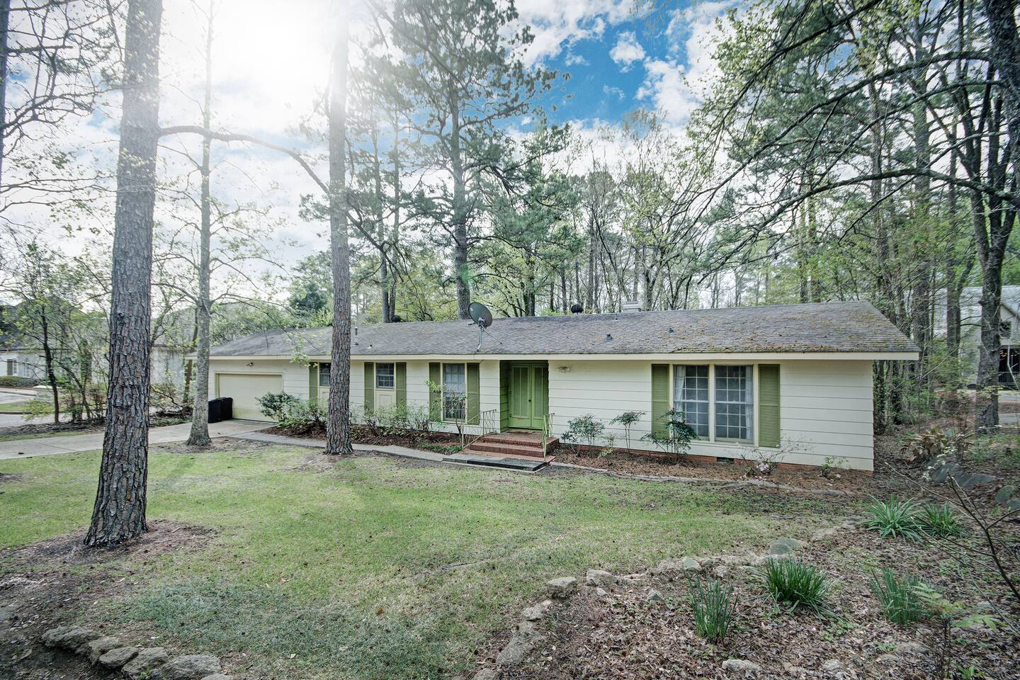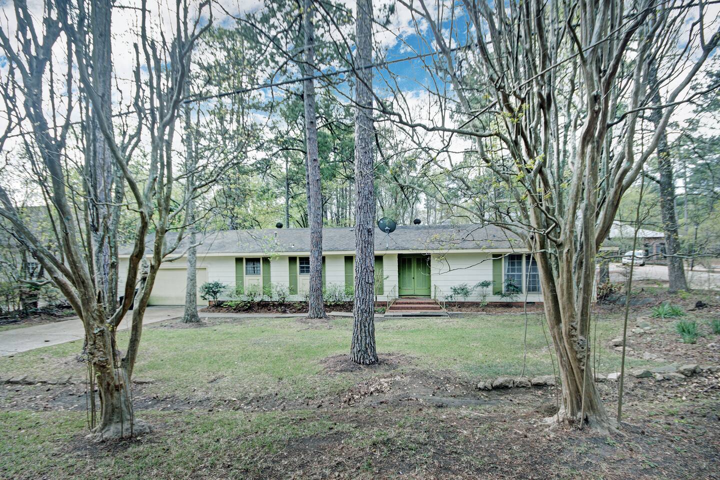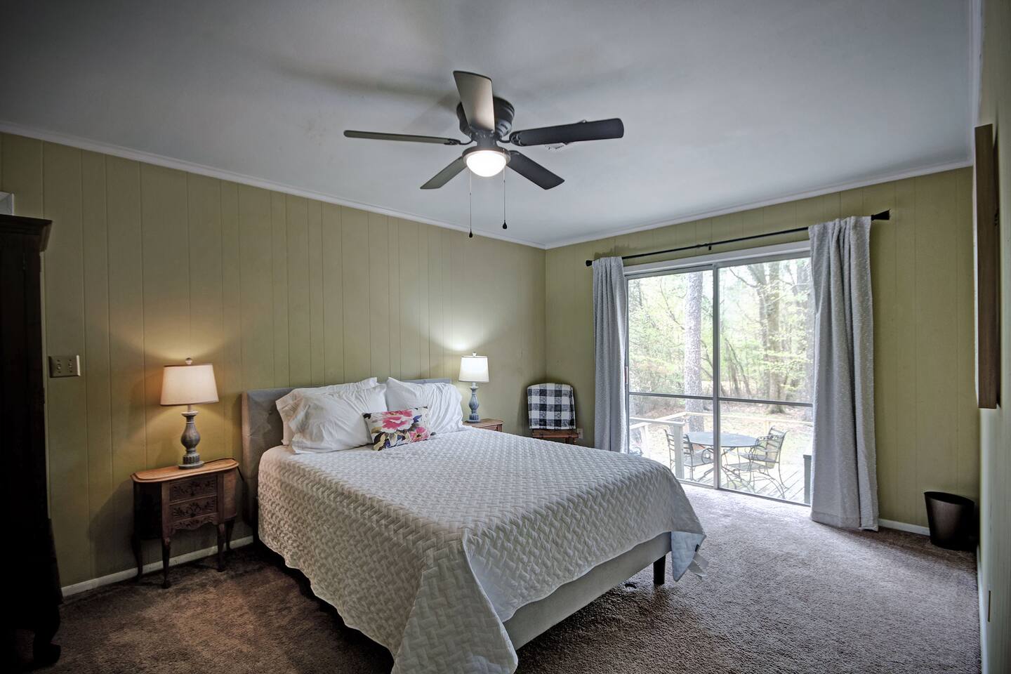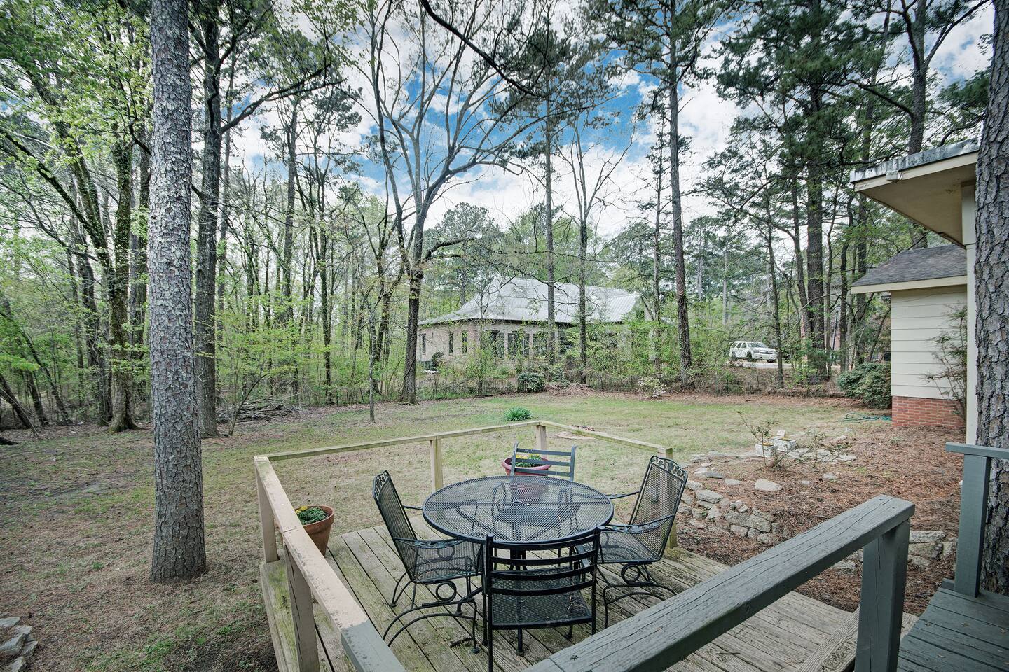 Room for Everyone — Four bedrooms provide privacy and flexibility, with cozy beds and fresh linens to ensure a great night’s sleep. 1 King, 4 Queens. Two Full Bathrooms — Stocked with plush towels, toiletries, and all the essentials, making mornings easy for larger groups. Inviting Living Room — Kick back with high-speed Wi-Fi, a smart TV, and plenty of seating for movie nights, work sessions, or game-day hangouts. Fully Equipped Kitchen — Cook your favorite meals with ease! Complete with cookware, dishes, a coffee maker, and complimentary coffee and snacks to start your stay off right. Laundry Made Simple — An in-home washer and dryer keep clothes fresh, especially convenient for longer stays. Free On-Site Parking — No stress about parking; plenty of space right outside. Easy Self Check-In — Arrive on your schedule with a smart lock and clear instructions. Personalized Local Guidebook — Explore Jackson like a local with our curated list of restaurants, shops, attractions, and hidden gems. A large private backyard viewed from our glassed in porch.