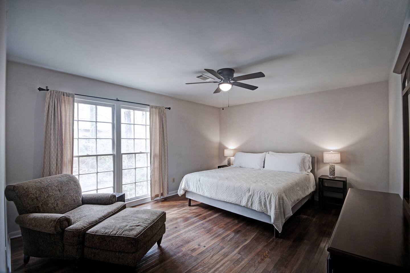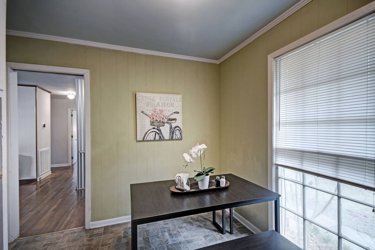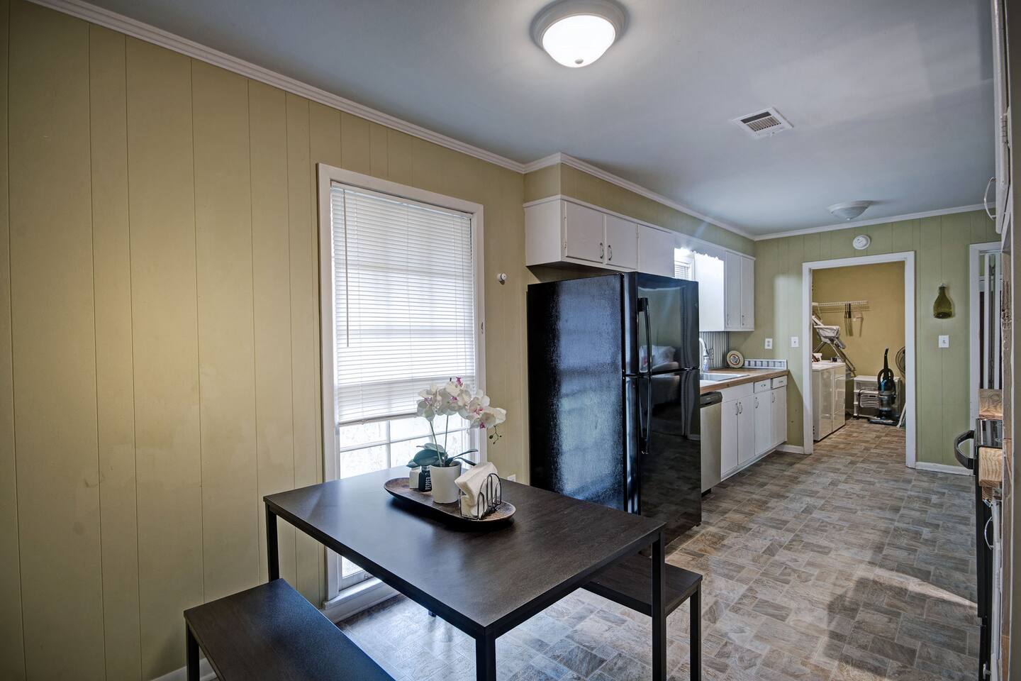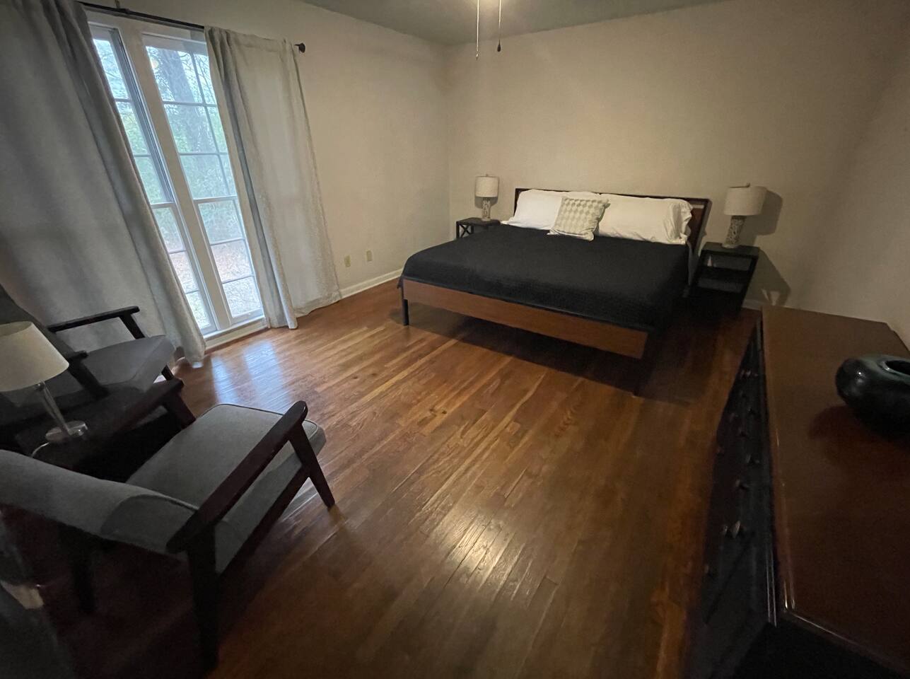 Room for Everyone — Four bedrooms provide privacy and flexibility, with cozy beds and fresh linens to ensure a great night’s sleep. 1 King, 4 Queens. Two Full Bathrooms — Stocked with plush towels, toiletries, and all the essentials, making mornings easy for larger groups. Inviting Living Room — Kick back with high-speed Wi-Fi, a smart TV, and plenty of seating for movie nights, work sessions, or game-day hangouts. Fully Equipped Kitchen — Cook your favorite meals with ease! Complete with cookware, dishes, a coffee maker, and complimentary coffee and snacks to start your stay off right. Laundry Made Simple — An in-home washer and dryer keep clothes fresh, especially convenient for longer stays. Free On-Site Parking — No stress about parking; plenty of space right outside. Easy Self Check-In — Arrive on your schedule with a smart lock and clear instructions. Personalized Local Guidebook — Explore Jackson like a local with our curated list of restaurants, shops, attractions, and hidden gems. A large private backyard viewed from our glassed in porch.