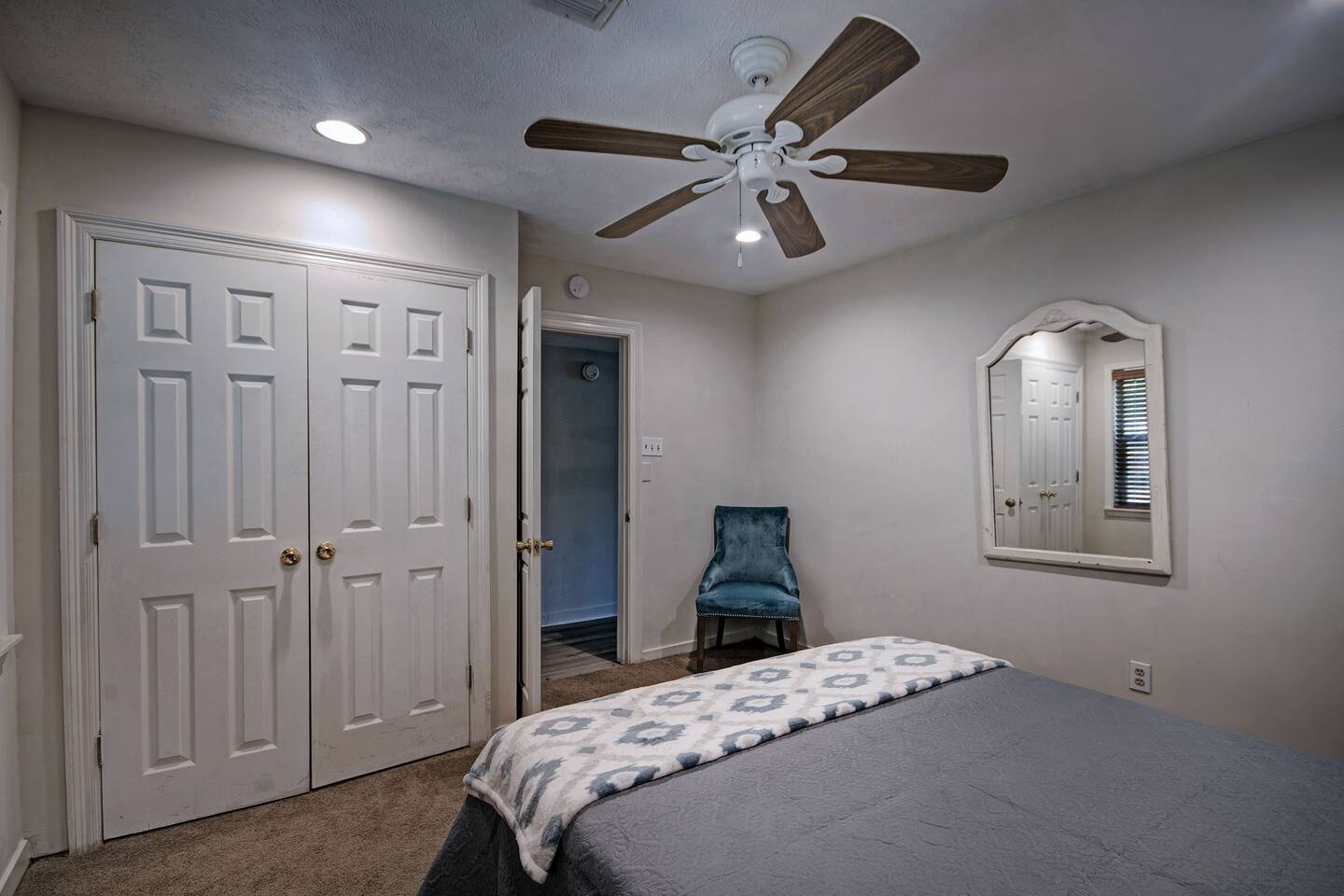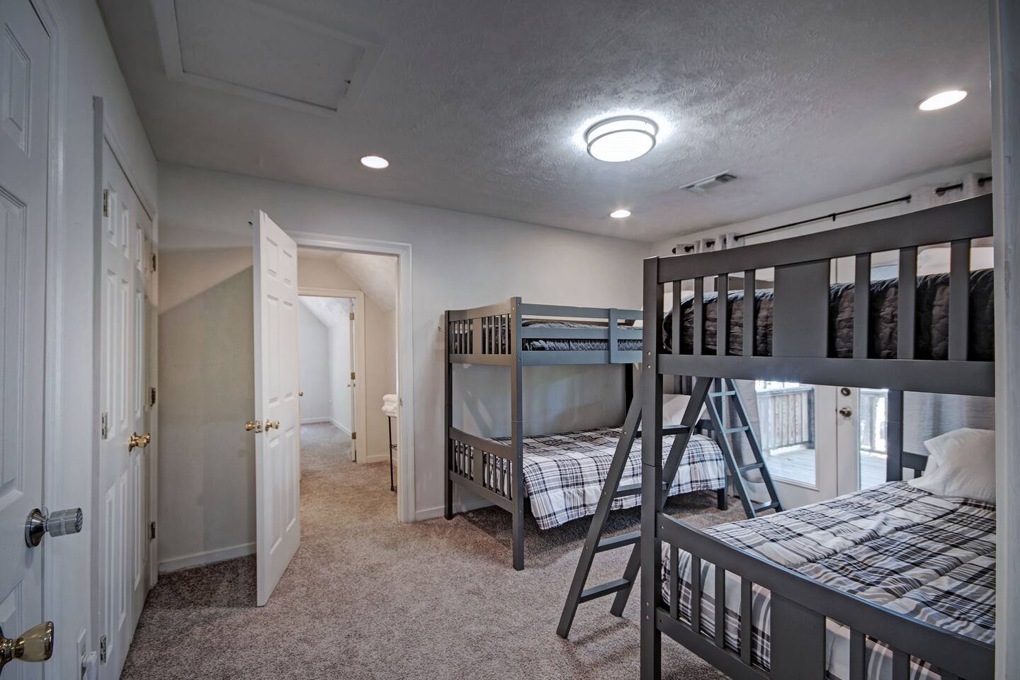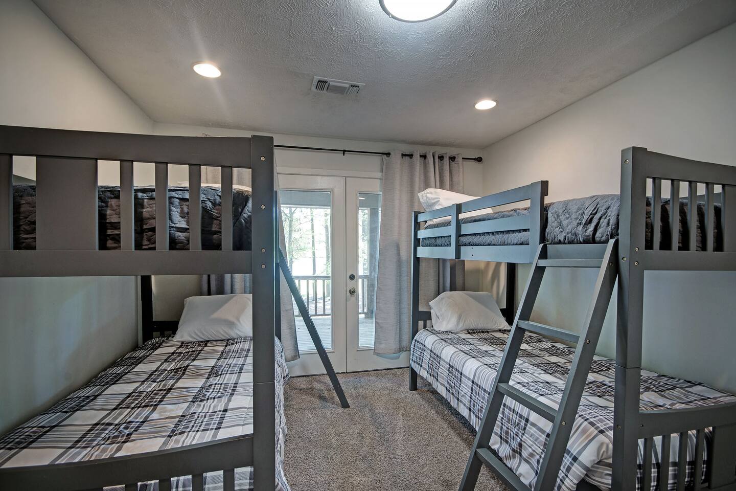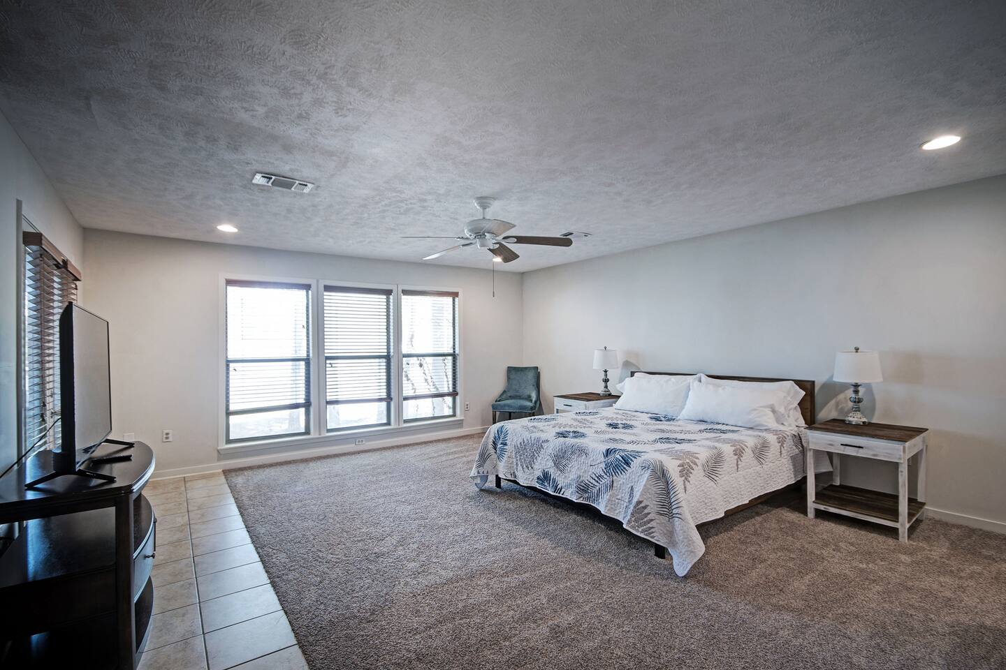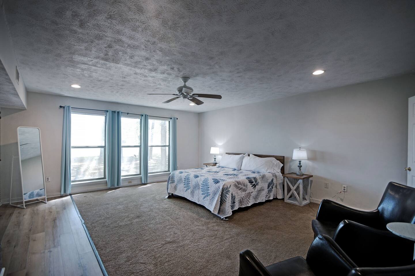 There are 2 bedrooms downstairs with 1 King and 1 Queen bed and 1 full bathroom. Upstairs there are 4 bedrooms and 2 full baths with 1 King bed, 2 Queen beds and 1 room with 2 sets of bunk beds (4 twin beds) with walkthrough bedrooms Relax in the large open-concept living area, cozy seating, and Smart TV for entertainment The fully stocked kitchen and adjoining dining area make meal prep and gatherings effortless Laundry facilities (washer & dryer) are on-site for added convenience Outdoor Spaces & Waterfront Access Two back porches—one on each level—offer serene views and spaces for relaxation or socializing BBQ grill and outdoor seating make this a great spot for evening cookouts or sunny gatherings Driveway and carport space accommodate up to 5 vehicles or even boats—boat-friendly setup Boat Slip Just 0.25 miles from a public boat launch and 1 mile from Lakeshore Park’s beach, ideal for water activities and trail access Guest Perks & Amenities High-speed Wi-Fi and Smart TVs throughout the home Family- and group-friendly layout in a quiet, kid-safe neighborhood Boat-friendly parking, open outdoor areas, and water access add adventure to your stay .
