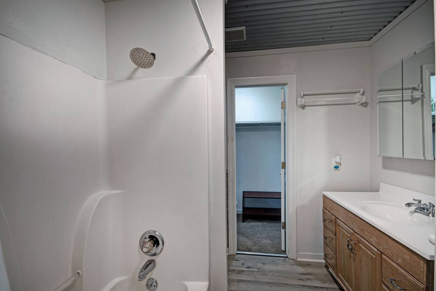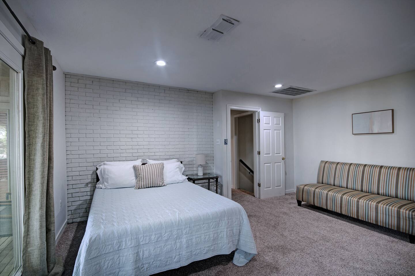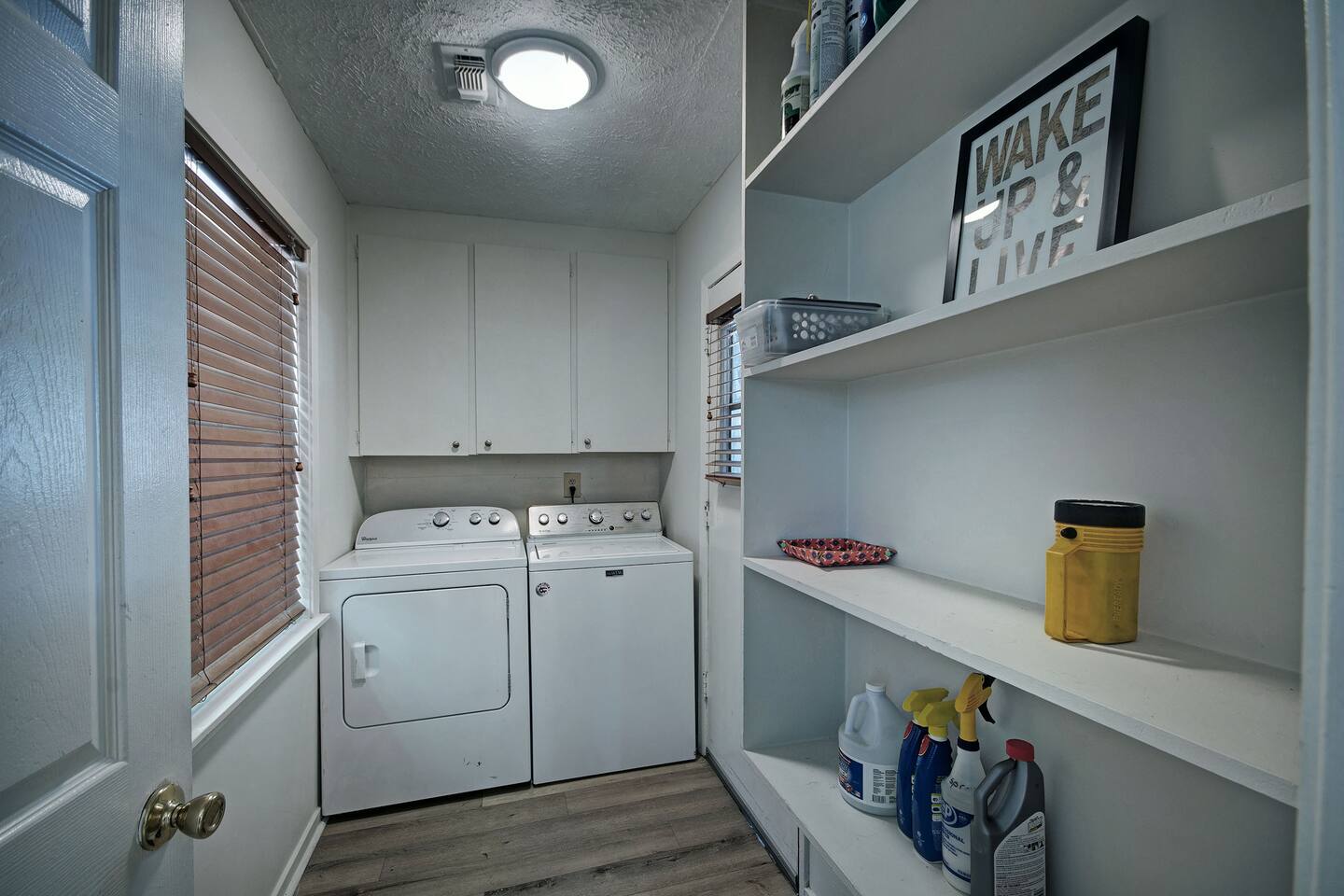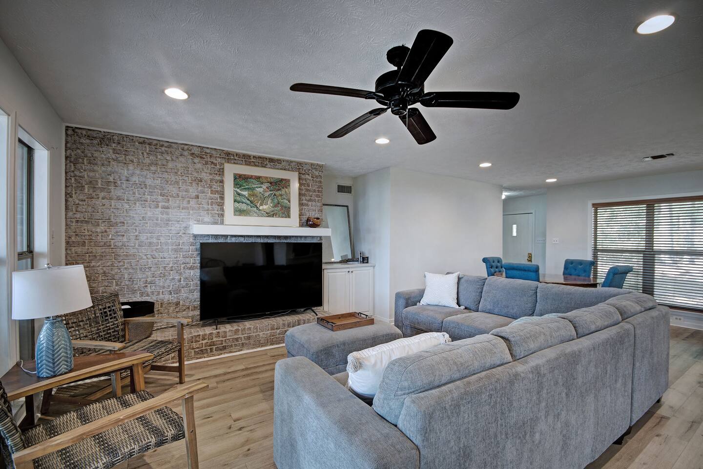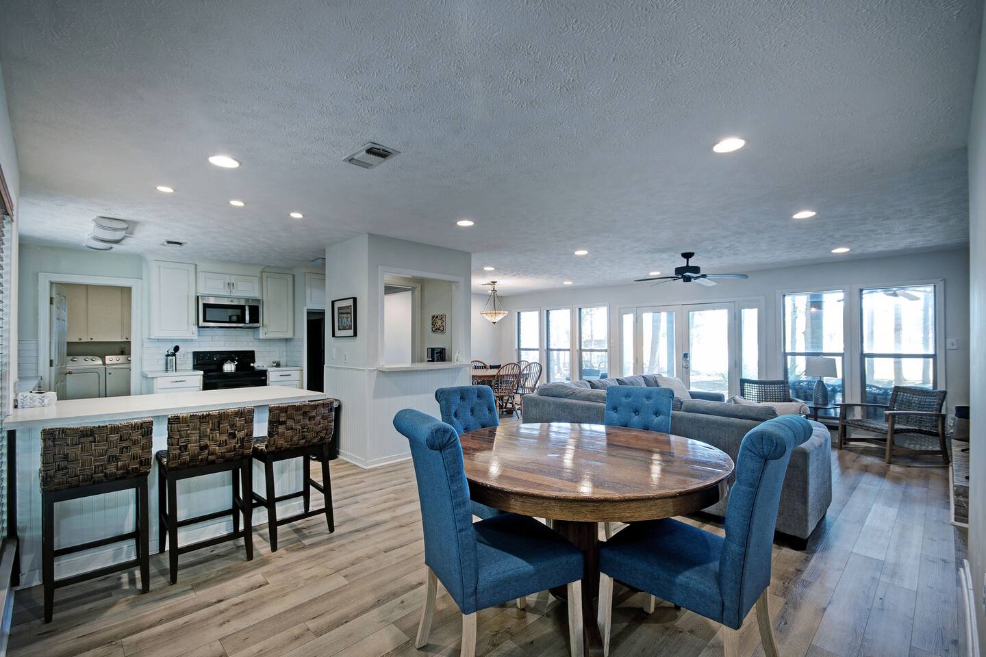 There are 2 bedrooms downstairs with 1 King and 1 Queen bed and 1 full bathroom. Upstairs there are 4 bedrooms and 2 full baths with 1 King bed, 2 Queen beds and 1 room with 2 sets of bunk beds (4 twin beds) with walkthrough bedrooms Relax in the large open-concept living area, cozy seating, and Smart TV for entertainment The fully stocked kitchen and adjoining dining area make meal prep and gatherings effortless Laundry facilities (washer & dryer) are on-site for added convenience Outdoor Spaces & Waterfront Access Two back porches—one on each level—offer serene views and spaces for relaxation or socializing BBQ grill and outdoor seating make this a great spot for evening cookouts or sunny gatherings Driveway and carport space accommodate up to 5 vehicles or even boats—boat-friendly setup Boat Slip Just 0.25 miles from a public boat launch and 1 mile from Lakeshore Park’s beach, ideal for water activities and trail access Guest Perks & Amenities High-speed Wi-Fi and Smart TVs throughout the home Family- and group-friendly layout in a quiet, kid-safe neighborhood Boat-friendly parking, open outdoor areas, and water access add adventure to your stay .