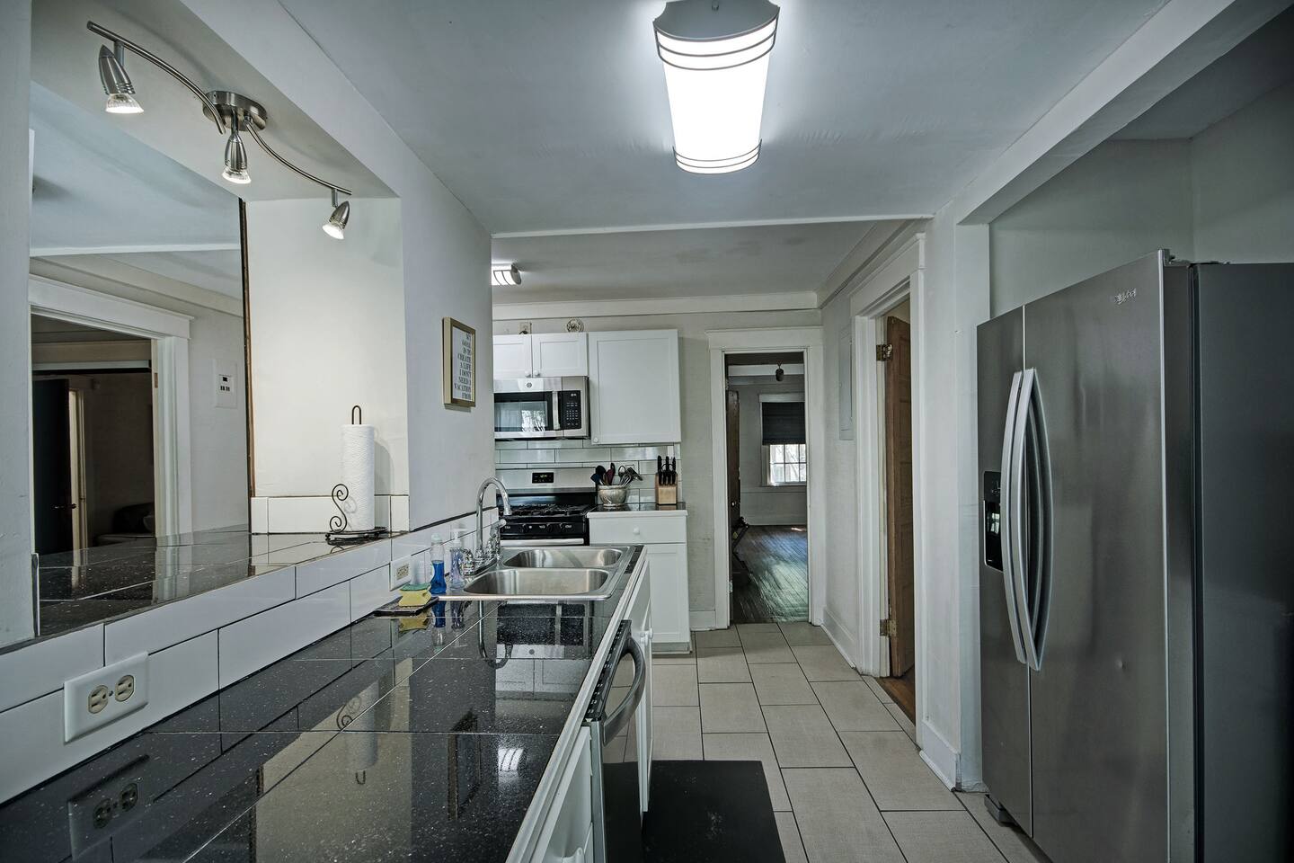 Step into an airy, welcoming space that’s as functional as it is comfortable: 7 Bedrooms – Thoughtfully furnished with a mix of 3 kings, 3 queens, and 2 twin beds in one bedroom, providing restful sleep for every guest. Each bedroom is designed to give privacy and comfort, perfect for winding down after a day of exploring Jackson. Smart TVs in every bedroom also. 3 Full Bathrooms – Equipped with fresh towels, toiletries, and essentials, making it easy for groups to get ready without the wait. Spacious Living Room – Gather together for movie nights, storytelling, or just relaxing with your favorite drinks. Multiple sofas and a large-screen smart TV create the perfect lounge space. Fully Equipped Kitchen – Stocked with modern appliances (fridge, stove, oven, microwave, coffee maker, cookware, and dishes). Whether you’re cooking a holiday meal or brewing morning coffee, the kitchen is ready for you. Dining Area – A large dining table makes it easy to enjoy meals together, celebrate special occasions, or even host a working dinner. Laundry Facilities – 2 sets of Washer and dryers available for guest use, ideal for longer stays. Outdoor Spaces Back porch seating – Enjoy a morning coffee or evening glass of wine while taking in the neighborhood’s peaceful vibe. Backyard gathering space – Room for kids to play, adults to relax, or the whole group to enjoy the Mississippi breeze. Ample Parking – Private driveway and street parking to accommodate multiple vehicles. Up to 9 cars or trucks.