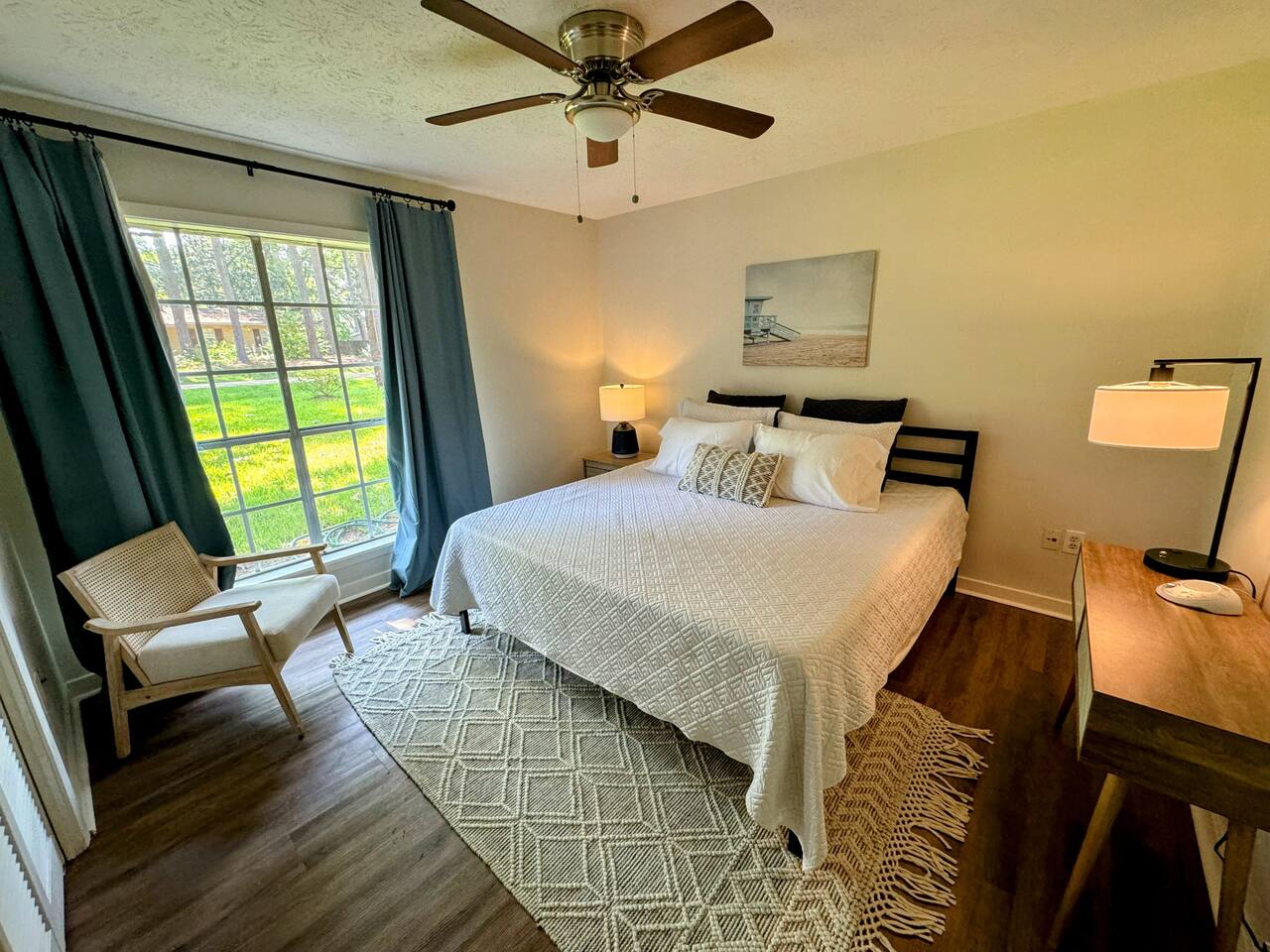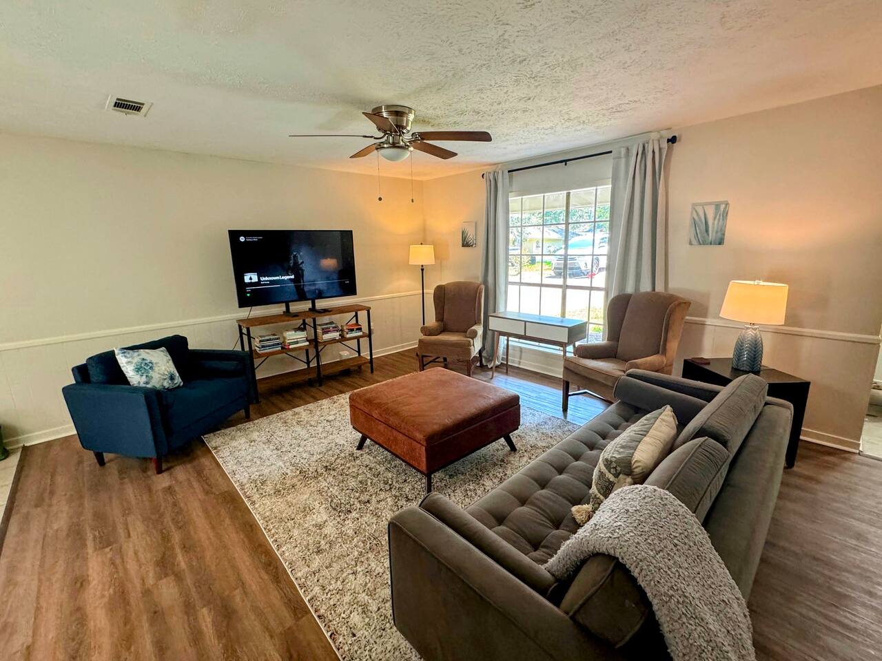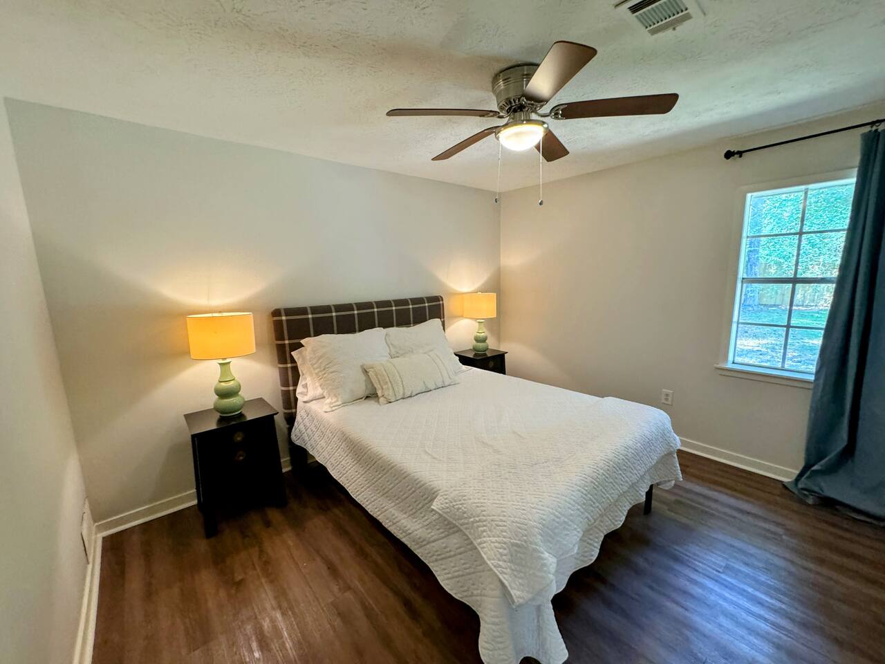3 Bedrooms: 1 King bed in Bedrooms 1 1 Queen bed in Bedroom 2 & 3 Sleeps up to 6 guests comfortably 2 Full Bathrooms : Equipped with both bathtub/shower combos, fresh towels, and essential toiletries Kitchen & Living: Fully equipped kitchen with modern appliances Bright and inviting living space with TV and Wi-Fi for staying connected and entertained Laundry: Washer and dryer included for added flexibility during your stay Outdoor Space Roomy backyard featuring an outdoor BBQ grill—perfect for family cookouts, evening meals, or relaxing under the open sky Exterior security cameras ensure peace of mind during your stay Free on-site parking included, offering hassle-free access for guests with vehicles Guest Perks Free high-speed Wi-Fi throughout the house for work and entertainment Modern A/C and climate comfort for year-round relaxation